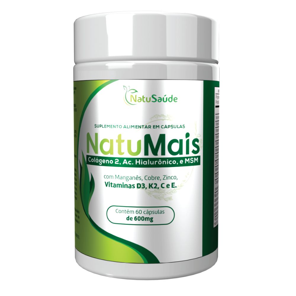 O que já era bom, ficou ainda melhor! NatuMais, agora na versão evoluída para alcançar um novo desempenho de mobilidade e movimento. Uma solução avançada, única e completa, desenvolvido a partir do colágeno tipo II não desnaturado, conta também com 40mg de colágeno de frango, uma molécula bioativa que auxilia na manutenção da função articular e regenera os tecidos conjuntivos. Conta agora com Condroitina que age sobre a cartilagem que reveste as articulações, protegendo e retardando o processo degenerativo e inflamatório, diminuindo a dor e a limitação dos movimentos que geralmente acontecem em doenças que atingem a cartilagem, MSM (metil sulfoni metano) essencial na síntese de proteínas estruturais e aminoácidos, fundamentais para a composição dos tecidos orgânicos, possui ação anti-inflamatória e auxilia na redução de inchaços, ácido hialurônico que atua como um lubrificante absorvendo choques nas articulações e melhorando dores. A fórmula não para por aí, a associação com as vitaminas D3, K2, C e E, como também os minerais, magnésio, manganês, zinco, cobre atuam em sinergia regenerando os tecidos cartilaginosos articulações, ligamentos e tendões, além de favorecer a saúde óssea e muscular.